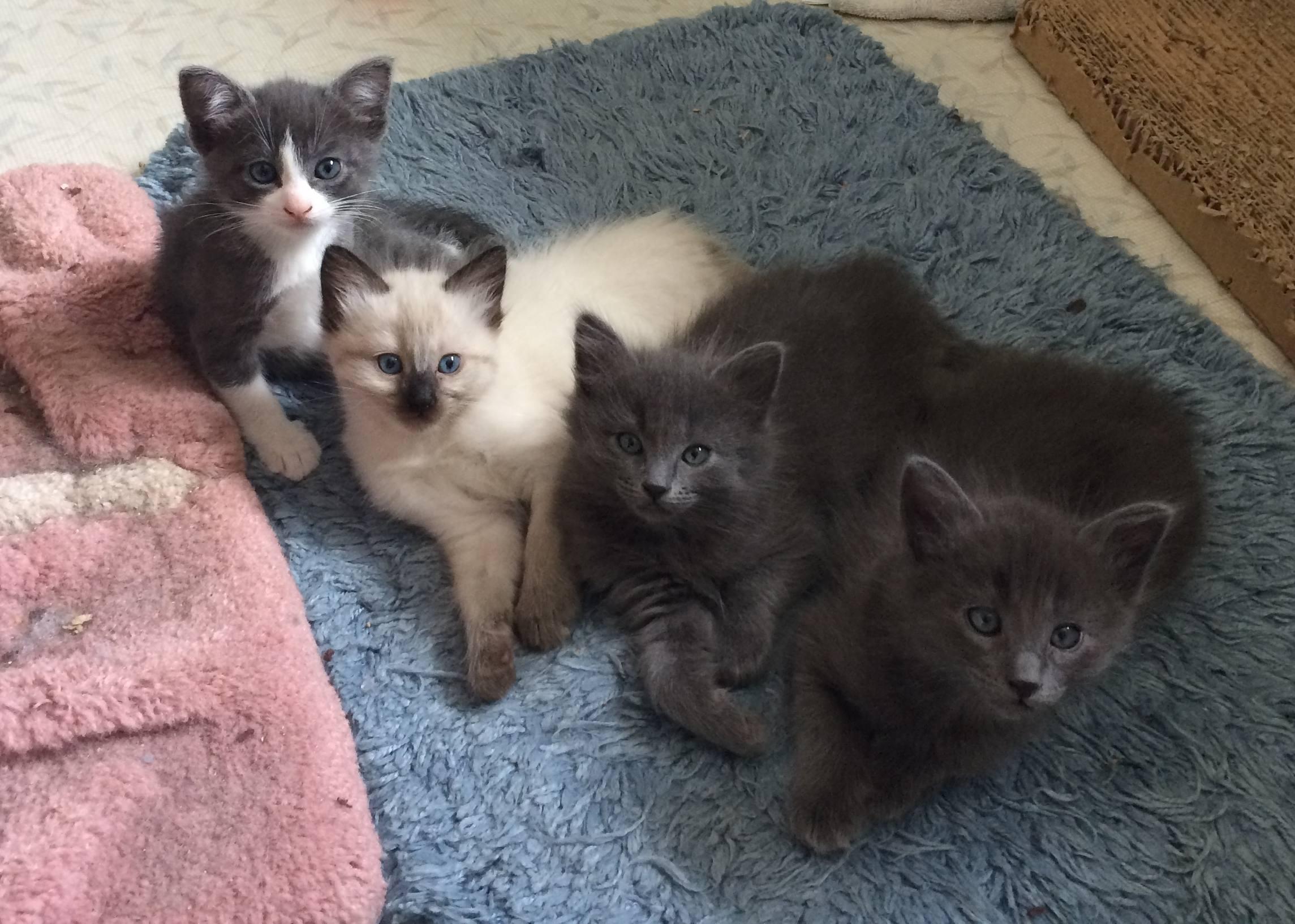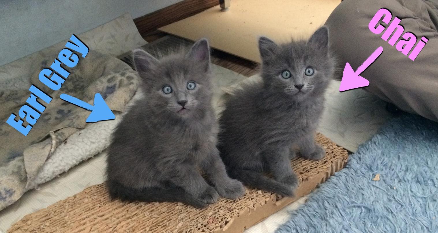 The Tea Family kittens were found an a backyard garage in Santa Clara when they were about a week old. They were going to be taken to the shelter, but Companions In Waiting stepped in to give quality care to these bottle-babies. A few days later (3/30/18) Mum was trapped and brought to the foster home and Mum and kittens were reunited. We're not sure of Mum's age yet.